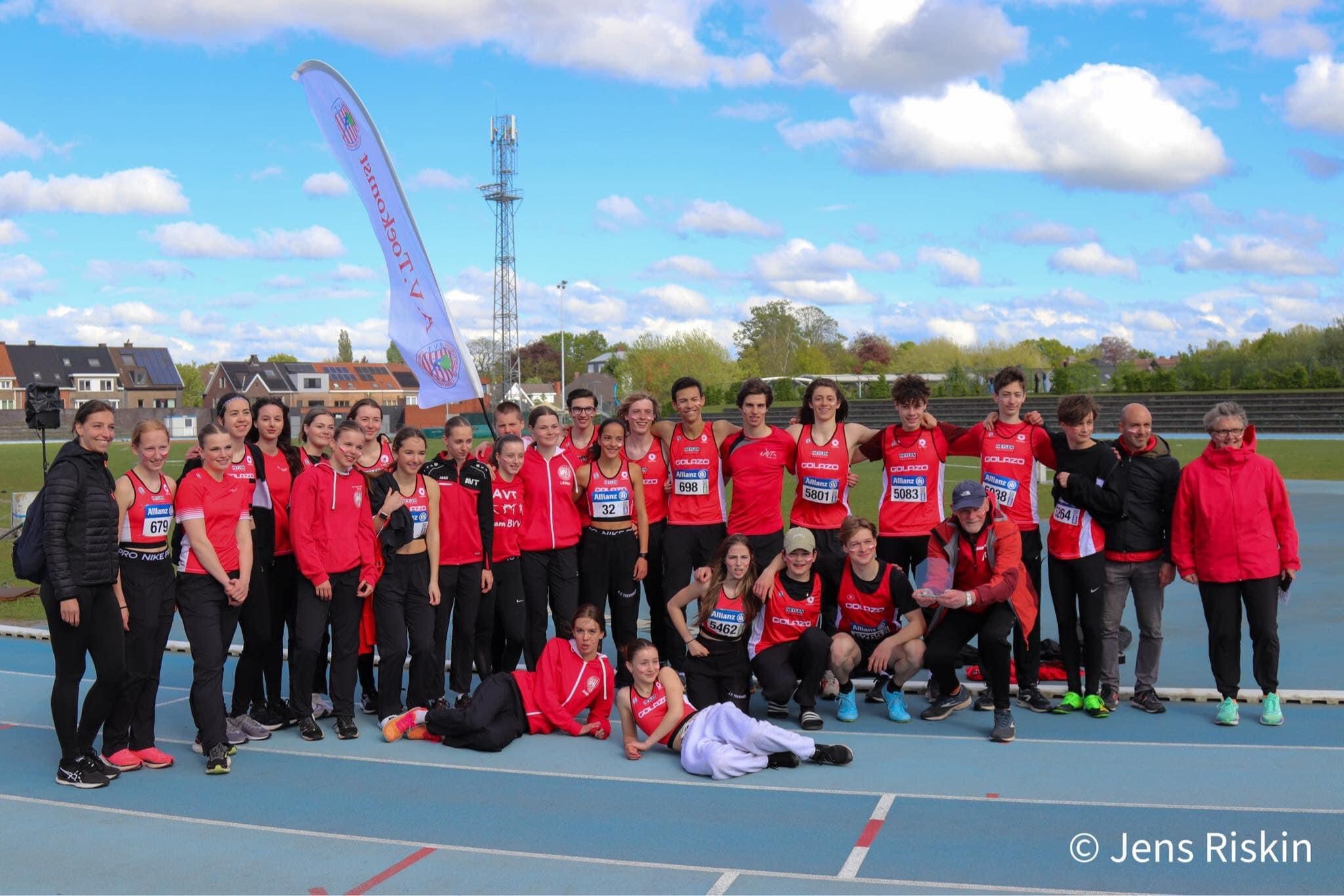 Dit gaf onze atleten een enorme boost en stelselmatig klommen we omhoog en omhoog … tot de 1e plaats. De voorsprong werd steeds maar uitgebreid en alzo werden de cadetten en scholieren zéér knap kampioen in 2e afdeling 2B met een voorsprong van meer dan 30 punten.